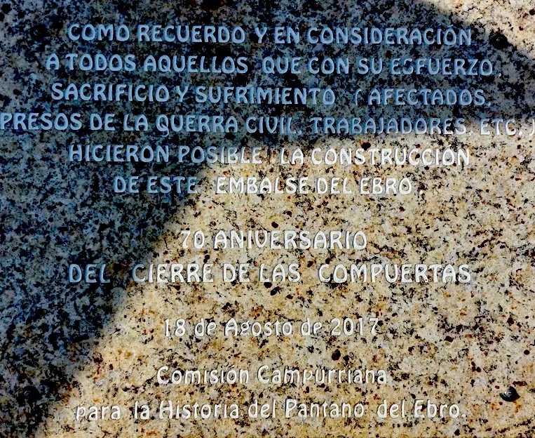 Una humilde placa rememora a los presos republicanos que, al finalizar la Guerra Civil, trabajaron en el monumental Pantano del Ebro. Setenta años después del cierre…