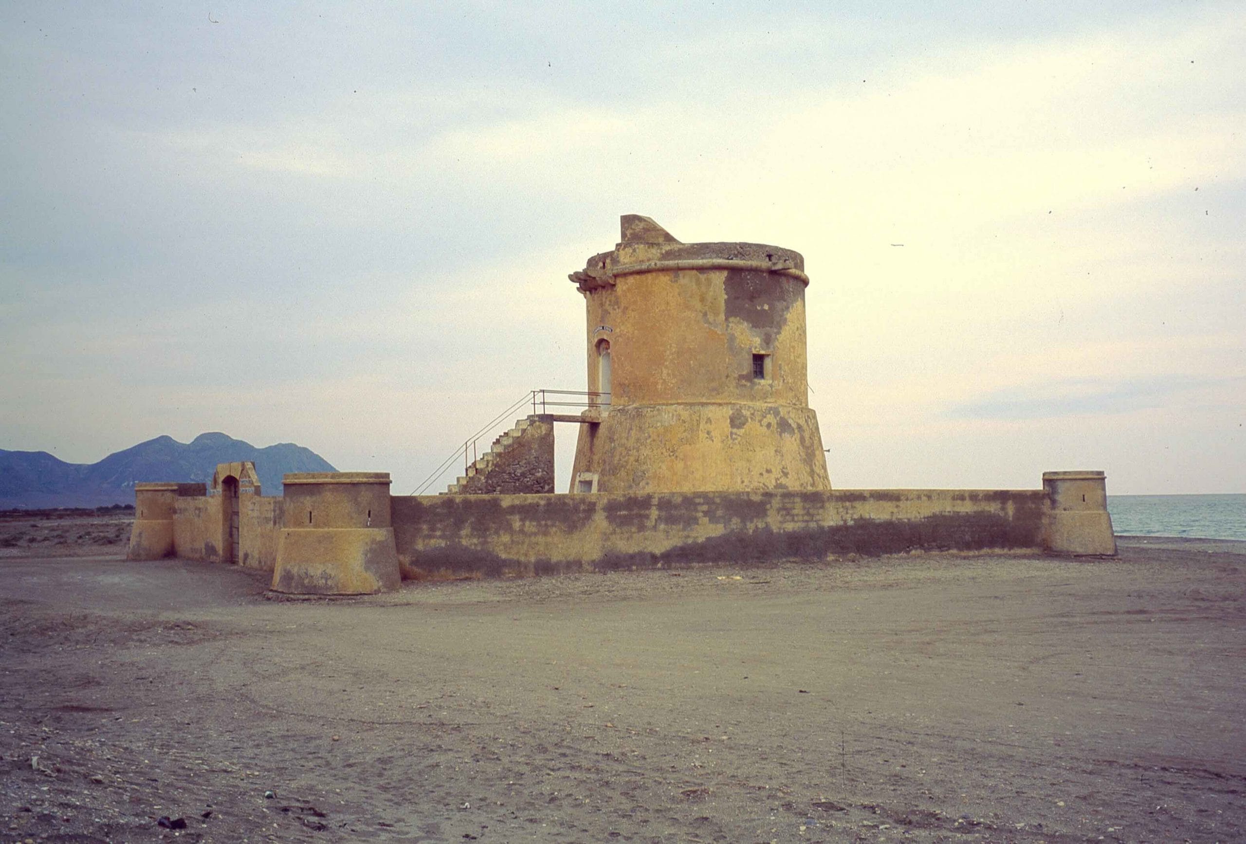 En sus orígenes, el pueblo de Cabo de Gata —también conocido como El Cabo—, era un mínimo núcleo de pescadores surgido en torno al Torreón de San Miguel, una de las muchas torres de vigilancia destinadas a proteger el litoral almeriense y que hoy parece bastante deteriorada. La torre data del siglo XVIII y el entorno era un paisaje de dunas que en los días de viento invadían las casas de arena. En los años setenta del siglo pasado, se tomó la decisión drástica de destinar la arena a usos agrícolas, las dunas desparecieron y lo que se puede ver ahora es un pueblo de construcciones bajas que se asoma a una extensa playa, concurrida en verano.