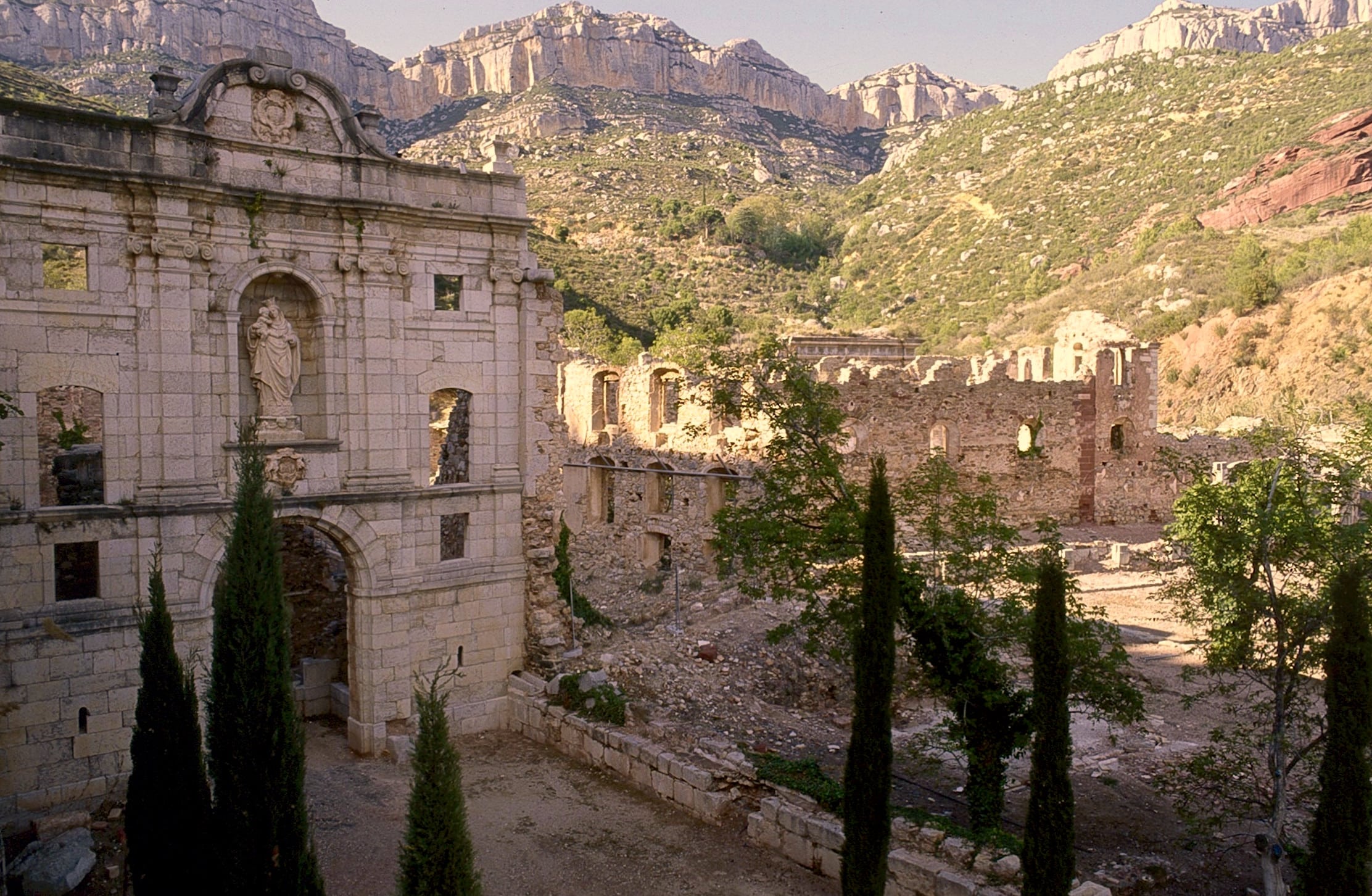 Una de las fundaciones religiosas más interesantes de Tarragona es este edificio, cuyas románticas ruinas se alzan en un abrupto rincón montañoso del Priorat. El lugar elegido se debe a un pastor que, en su sueño, vio ángeles subiendo al cielo desde una escalera apoyada en un gran árbol. Pese a su abandono, los muros, las ruinas de las casas, los restos de sus claustros y la imponente fachada de la iglesia premiten entrever la importancia que alcanzó la cartuja, una de las primeras que funcionaron en el país. Los monjes trajeron el cultivo de la viña, molinos y agricultura, poblaron los campos e impartieron justicia hasta que llegó el abandono con la Desamortización de Mendizábal. En los últimos años se ha acometido una rehabilitación parcial de algunas zonas, como los claustros y el refectorio y hay visitas guiadas al conjunto.