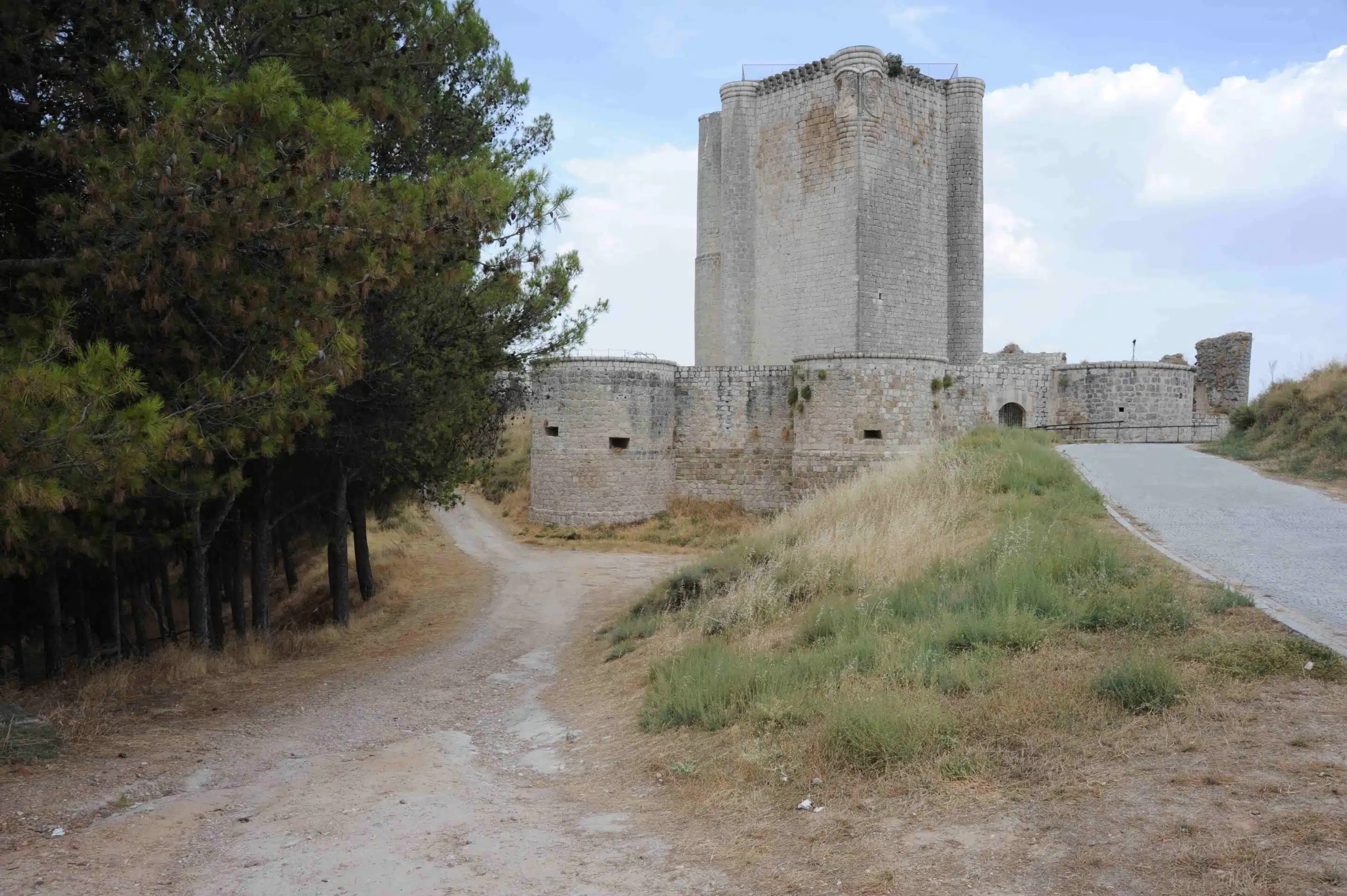El castillo de Íscar se alza sobre un espigón que domina el pueblo a gran altura en una zona de llanura por la que corren los ríos Eresma, Cega y Pirón. El pasado de la fortaleza es posiblemente un castro de gran antigüedad, y posteriormente fue un asentamiento romano y visigodo aunque la primera mención escrita es tiempos de Abderraman III, cuando pasó por la región para destruir poblaciones cristianas al sur del Duero. Más tarde siguió siendo una zona de conflictos entre familias nobles, que concluyó hacia el s. XV. El castillo data precisamente de ese siglo y es el edificio más interesante del pueblo. Conserva una espectacular torre del homenaje de planta pentagonal, una muralla con ocho cubos y un foso. En el núcleo urbano vale la pena que te acerques a la iglesia de San Miguel, muy representativa de lo que se conoce como el románico segoviano, y a la de Santa María de los Mártires. También se puede visitar el Museo Mariemma, consagrado a esta bailarina y coreógrafa nacida en Íscar en 1917 y que fue directora de importantes compañías de danza.