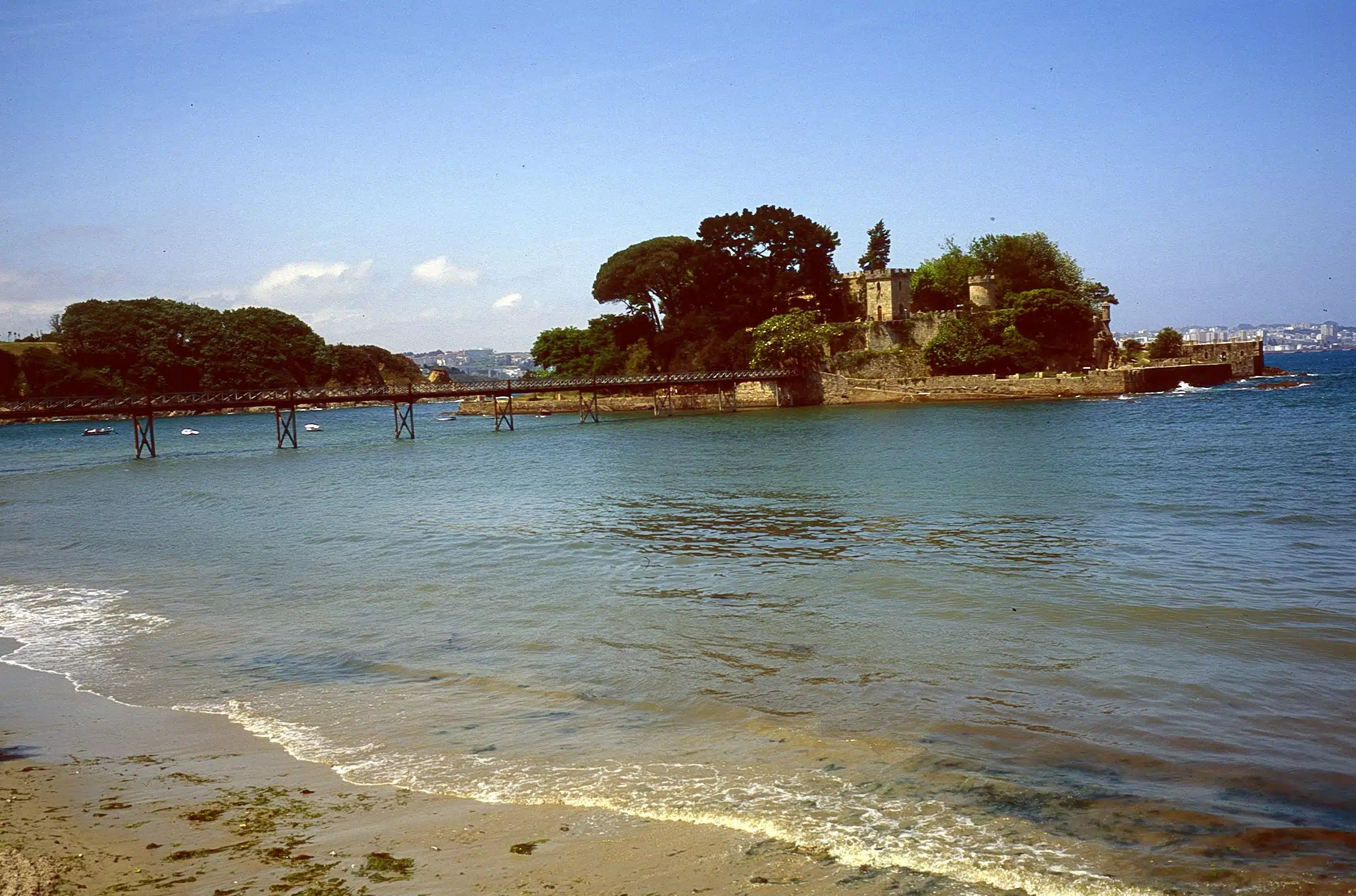 Resulta curioso el emplazamiento de este castillo levantado en el s. XVI sobre un islote rocoso próximo a Oleiros, al que se accede por un puente de hierro. La fortaleza se construyó para proteger la bahía de A Coruña frente a los ataques de los corsarios, entre ellos el famoso Francis Drake. Para ello contaba con un monumental cañón que alcanzaba los 10 kilómetros. Hoy tiene un cometido más pacífico y su recinto, que incluye un pazo, alberga un Centro de Educación Ambiental, con aulas, una biblioteca y exposiciones sobre ecología.