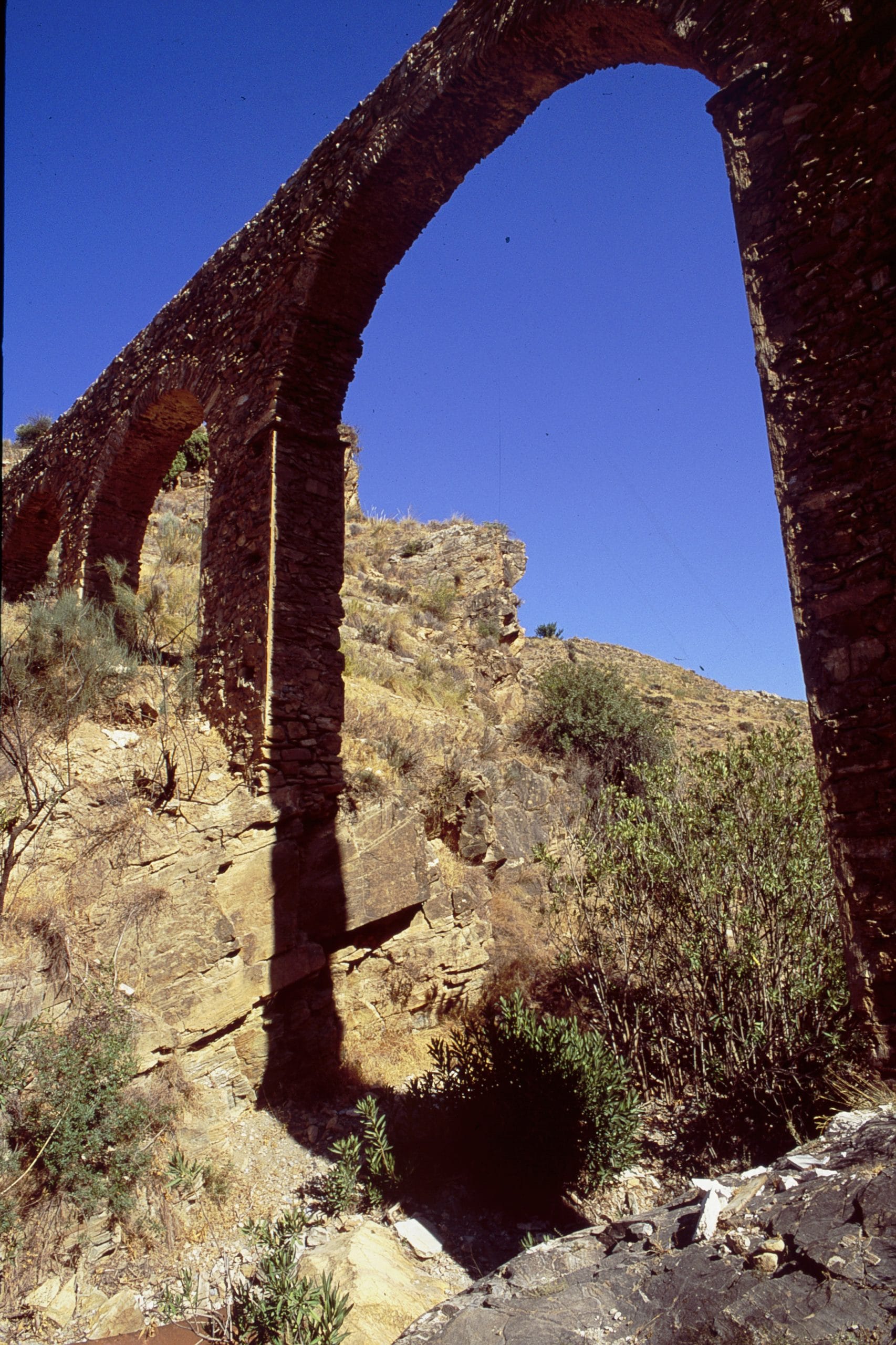 El arco central de siete metros de altura salva un cauce seco y sostiene esta solitaria obra de ingeniería romana. En el tranquilo pueblo de Albánchez la llaman Los Arcos de la Rambla del Pozo y se usó para regadío hasta comienzos del siglo pasado, lo que demuestra que los romanos sabían construir obras muy duraderas. Otra prueba de su presencia en la zona es el hallazgo del relieve de un fauno echando agua por la boca, que está en el Museo de Almería.
