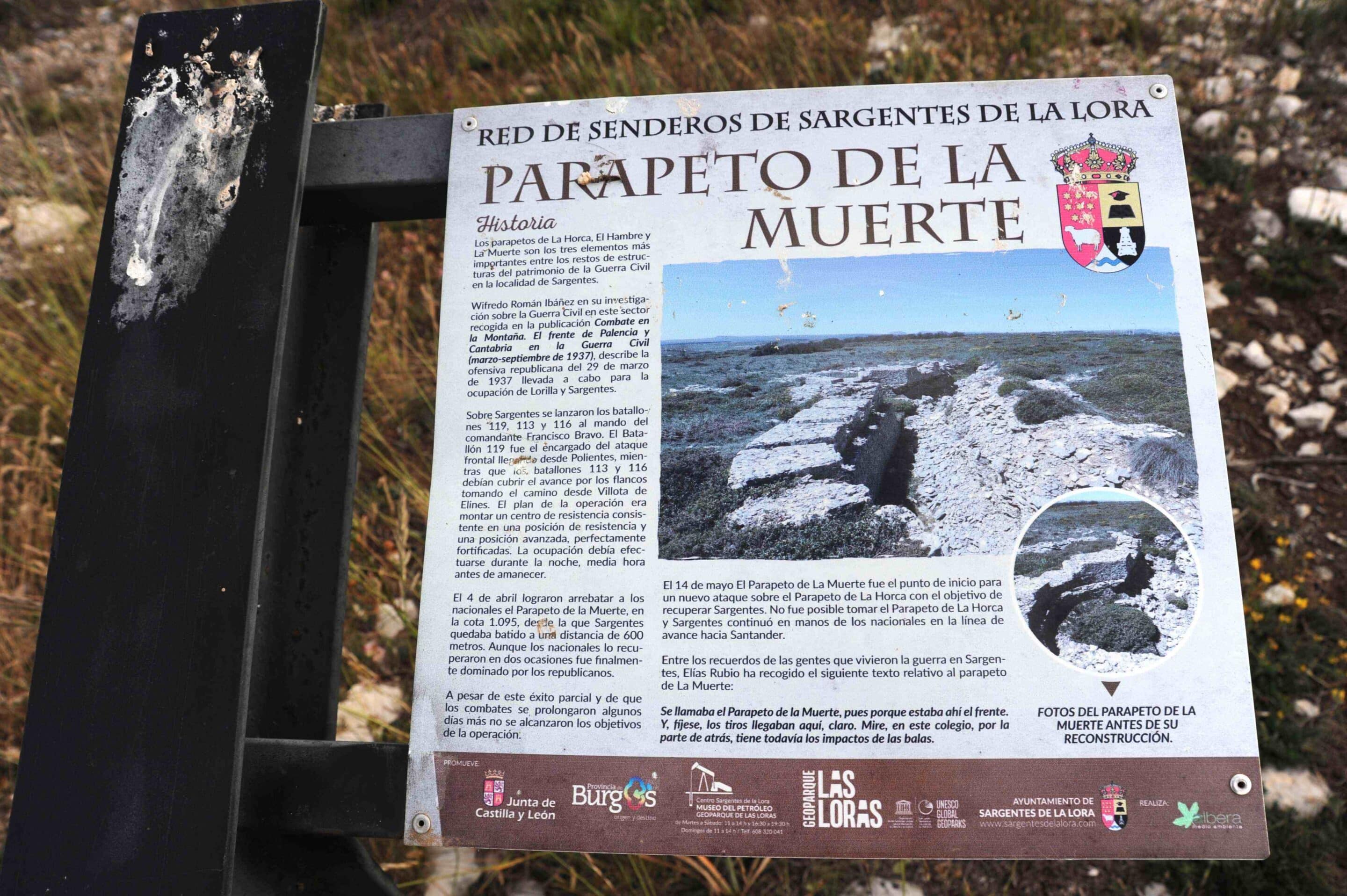 Desde Sargentes de la Lora se puede acceder también a un conjunto de restos defensivos utilizados durante la Guerra Civil e integrados en el llamado Frente Norte, un punto estratégico para el control de Cantabria. Las construcciones militares incluyen nidos de ametralladoras, parapetos y trincheras, en su mayoría levantadas por las tropas franquistas en 1937. Dentro de la ruta diseñada en el término, en la que están señalizados los distintos lugares, se encuentra la fuente de Domingo Manjón, a la que acudían los soldados de los dos bandos para saciar la sed y que hoy forma parte de los recuerdos de los vecinos de la zona.