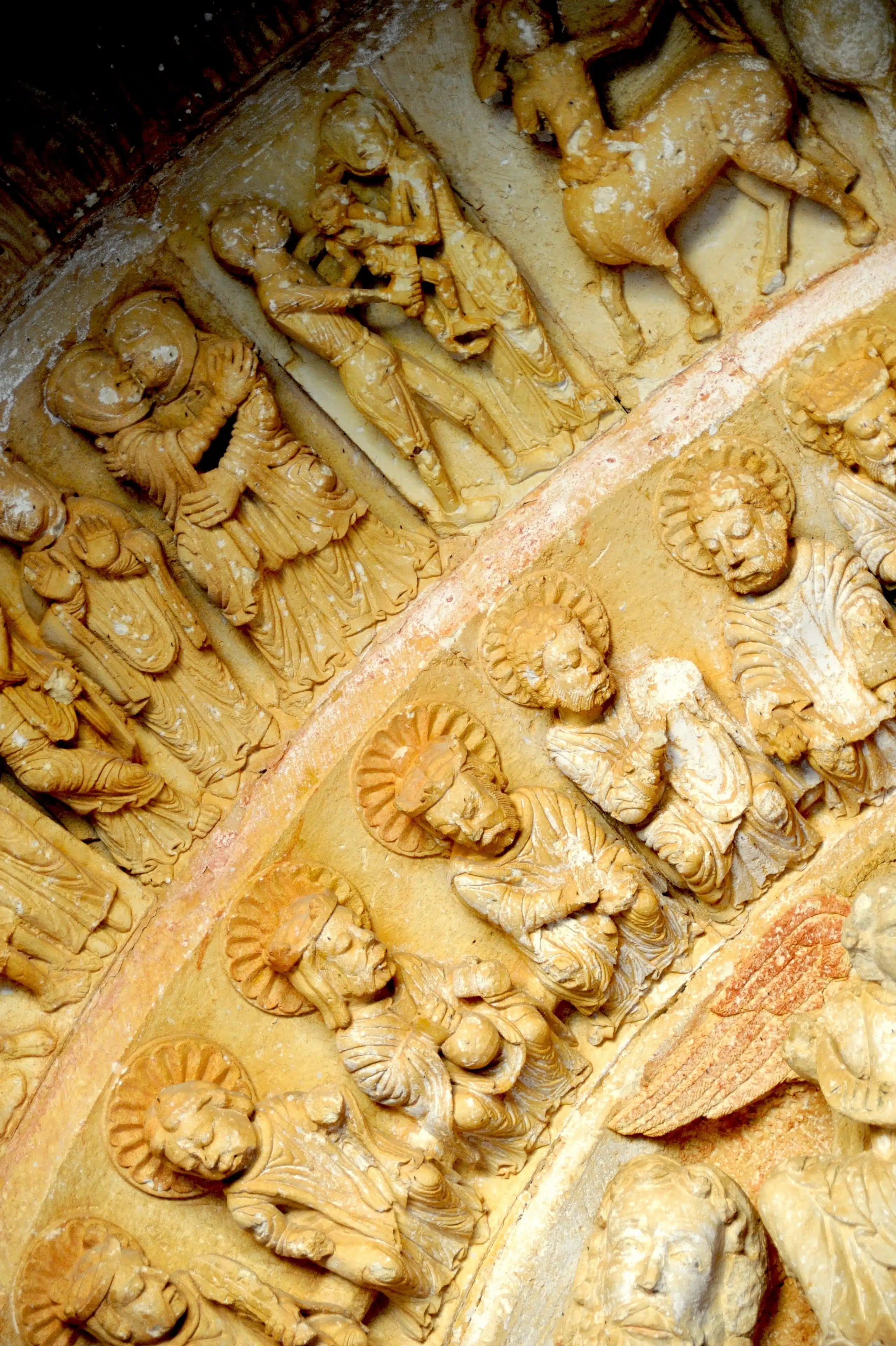 Otra bonita escala en el valle de Sedano es Moradillo y su iglesia de San Esteban, que corona el llamado monte de El Castro. Está considerada como uno de los grandes tesoros del románico en la provincia de Burgos, que ya es decir, y data de finales del s. XII. Un incendio destruyó parte del templo que fue reconstruido en estilo gótico tardío, aunque conserva una de esas colecciones de relieves que se quedan en la retina, una riquísima portada con escenas del Apocalipsis, incluyendo dragones, centauros y otras figuras fantásticas. La fantasía medieval asoma también en algunos capiteles, con representaciones de trasgos y arpías.