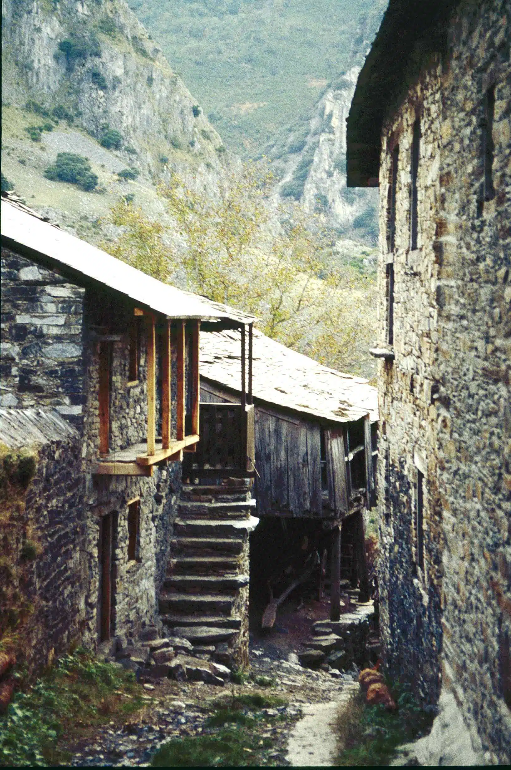 En un sobrecogedor paisaje protegido por grandes rocas aparece este mínimo pueblo de casas de piedra y tejados de pizarra con pequeñas solanas de madera, en el que asoma su primitiva iglesia, con una bonita espadaña y una portada de doble arco de herradura única. De aquel primer monasterio que fundó San Genadio en el año 909, únicamente se conserva el templo, cuya sencillez camufla un raro tesoro arquitectónico, una joya mozárabe en plena montaña leonesa. La puerta de acceso, formada por dos arcos de herradura, da paso a un interior bien conservado de una sola nave. Entre las piezas que se descubrieron durante una reciente restauración destacan cuatro figuras de marfil, conocidas como el ajedrez de San Genadio, y una cruz de azófar del s. X, que se guarda en el museo de León. Alrededor de la iglesia el pueblo ofrece todo su tipismo, con una arquitectura en la que ponen su nota de color algunas plantas sobre los balcones de madera.