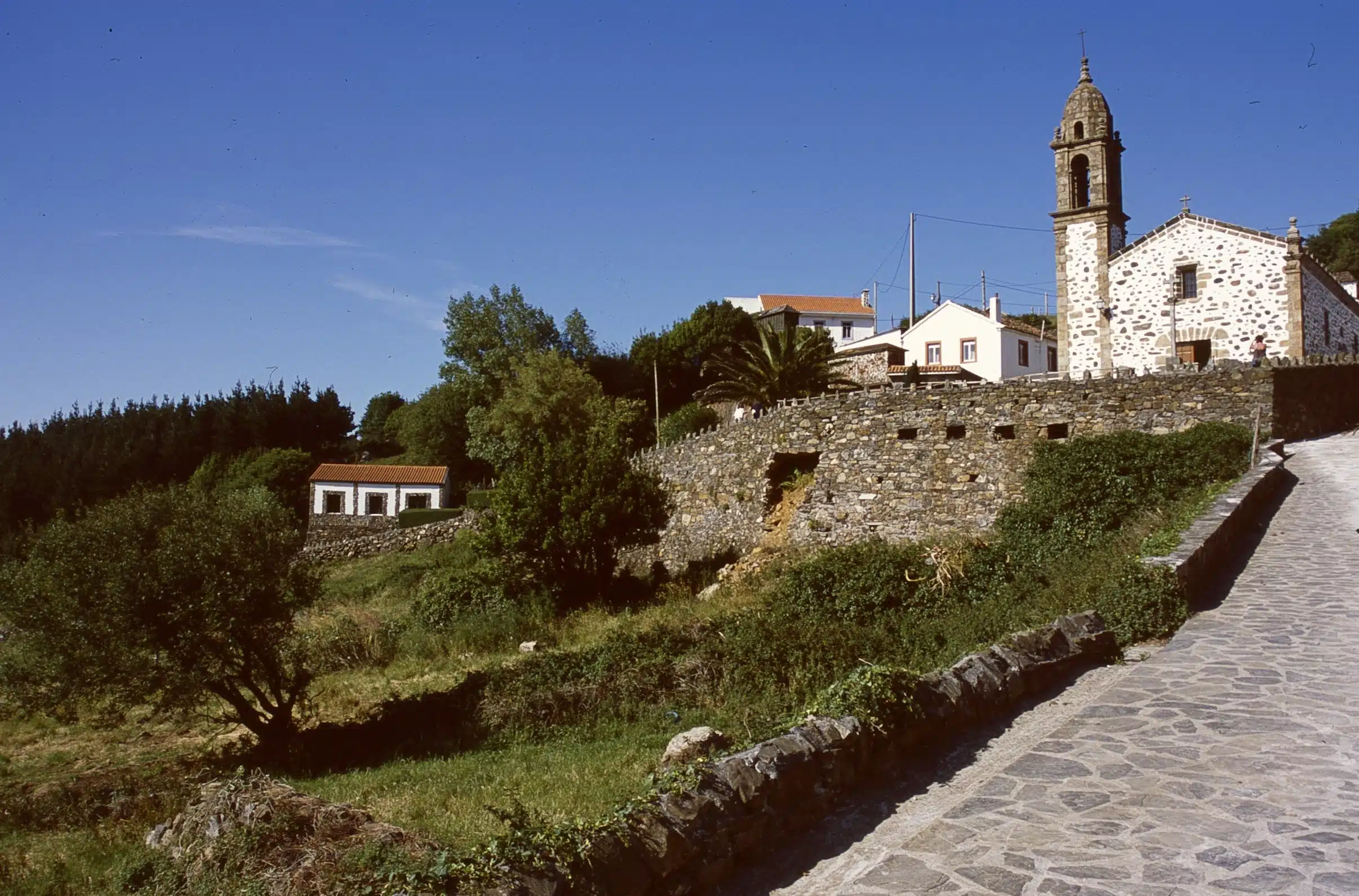 Si te aconsejamos que visites este templo no es por su interés arquitectónico, sino porque es uno de los más legendarios de Galicia, que ya es decir. Su campanario sobresale en los tejados de un recóndito pueblo con espectaculares vistas al mar. En septiembre, una romería congrega en él a miles de personas porque, dice la tradición que quien no va en vida, tendrá que ir muerto, (aunque sea de diferentes maneras). Así que aprovecha y de paso consigue alguno de esos ingenuos amuletos de colores hechos con miga de pan y cuidando de no pisar a ningún ser vivo, por pequeño que sea, porque podrían ser almas que quieren cruzar esa puerta a otra dimensión. Cerca del pueblo, el mirador de Erbeira ofrece una magnífica panorámica de la costa, vigilada por un bonito cruceiro.