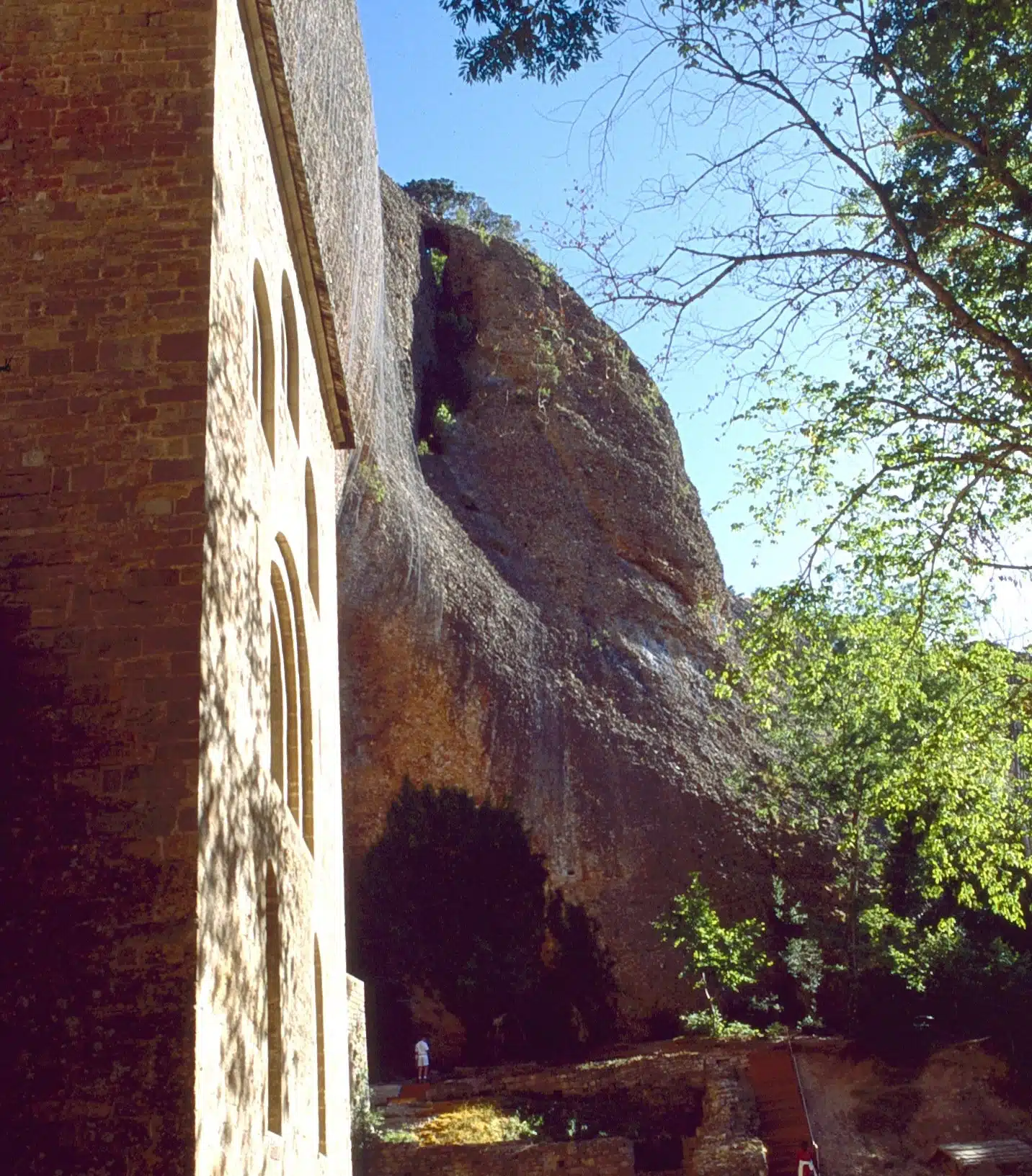 Hay quien asegura que la obra Parsifal y la posterior ópera de Wagner se inspiraron en este impactante monasterio incrustado bajo una roca. El cenobio, procedente de una de las cuevas habitadas por ermitaños que huían de la ocupación árabe, se convirtió en el más importante del reino de Aragón hacia el siglo XI y aún conserva la llamada sala de los concilios, así como un precioso claustro y un interior lleno de magia que albergó el Santo Grial. Una bonita carretera conduce hasta el monasterio nuevo, lugar de importantes hallazgos arqueológicos y objeto de una remodelación para servir como hospedería.