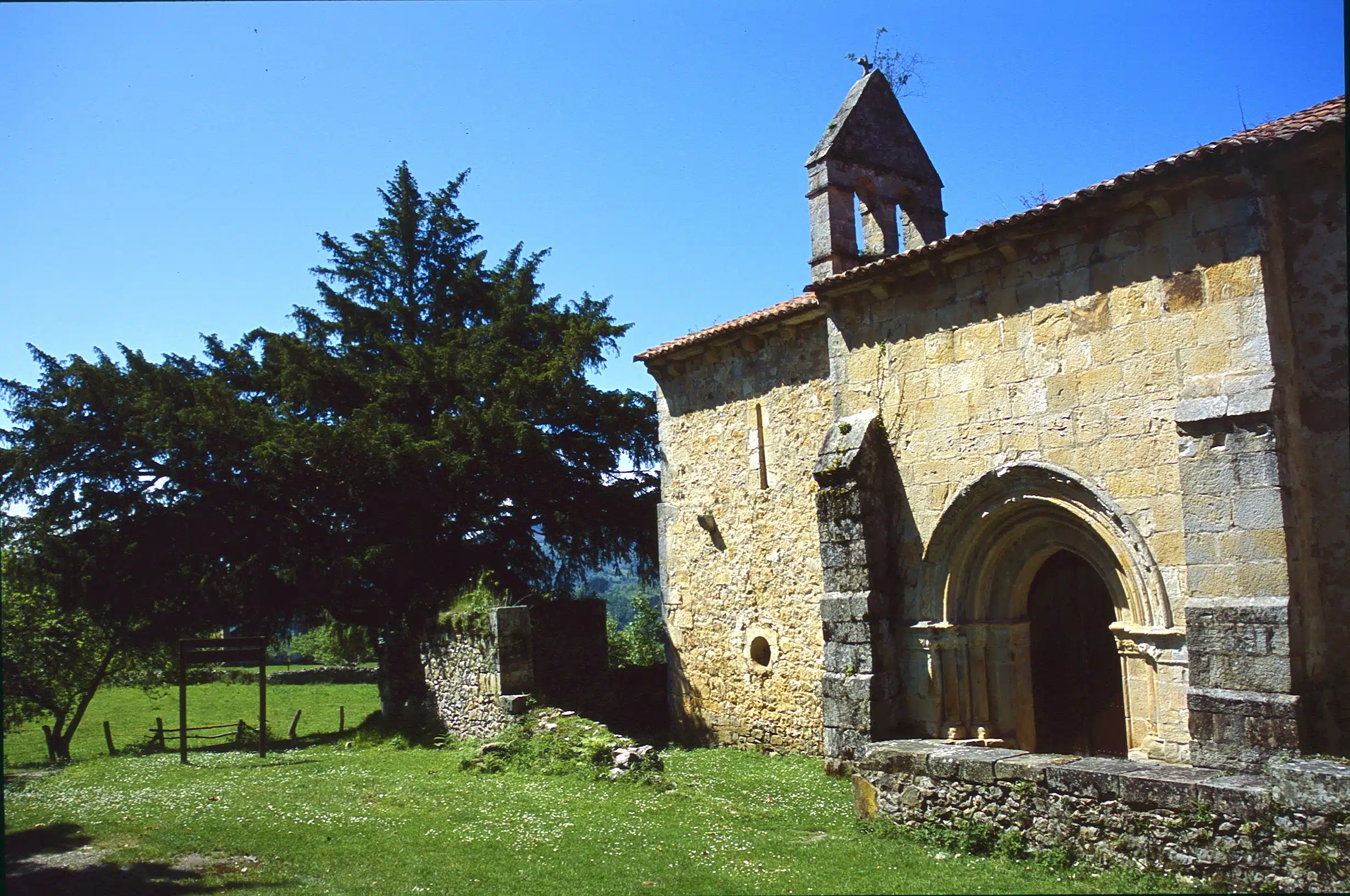 Un bucólico trayecto conduce a este templo que albergó los restos de los primeros monarcas asturianos, Pelayo y Gaudiosa y que ocupa el lugar de un monasterio y una fortaleza anteriores a la invasión musulmana. Rodeado por tejos milenarios, el edificio románico debió de ser un primitivo lugar de culto ya que en el mismo lugar se descubrieron un dolmen y un ídolo prehistórico.
