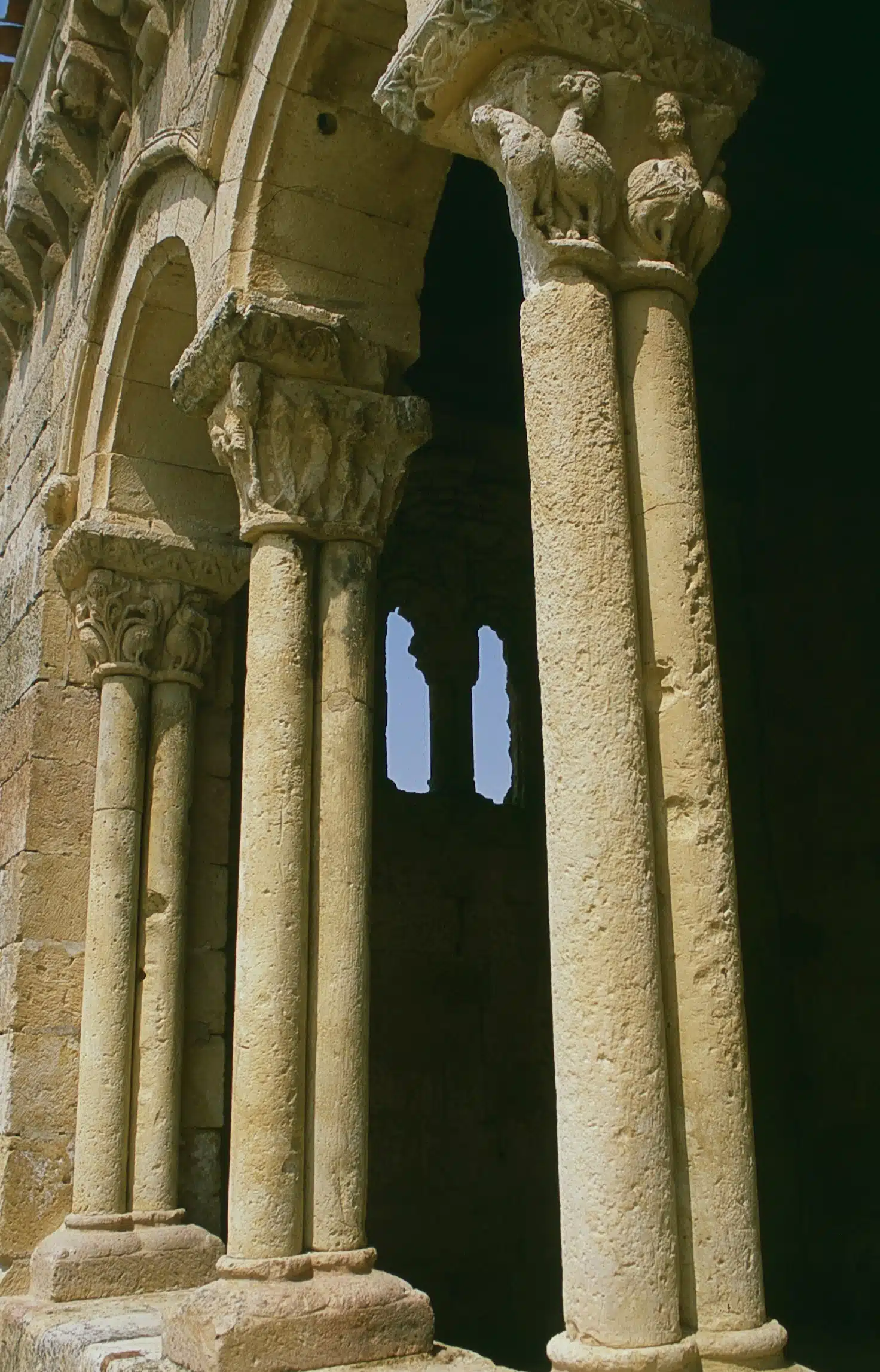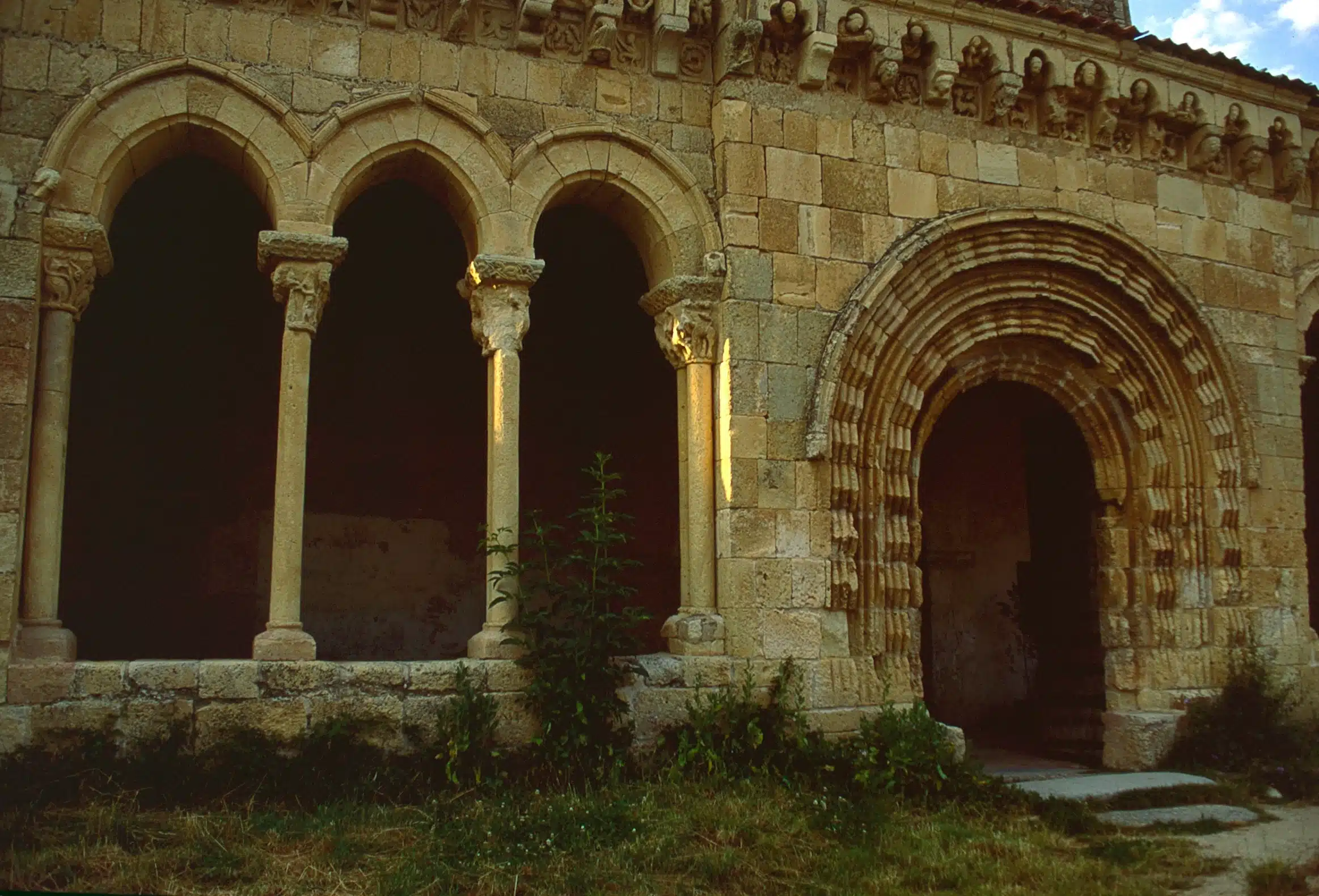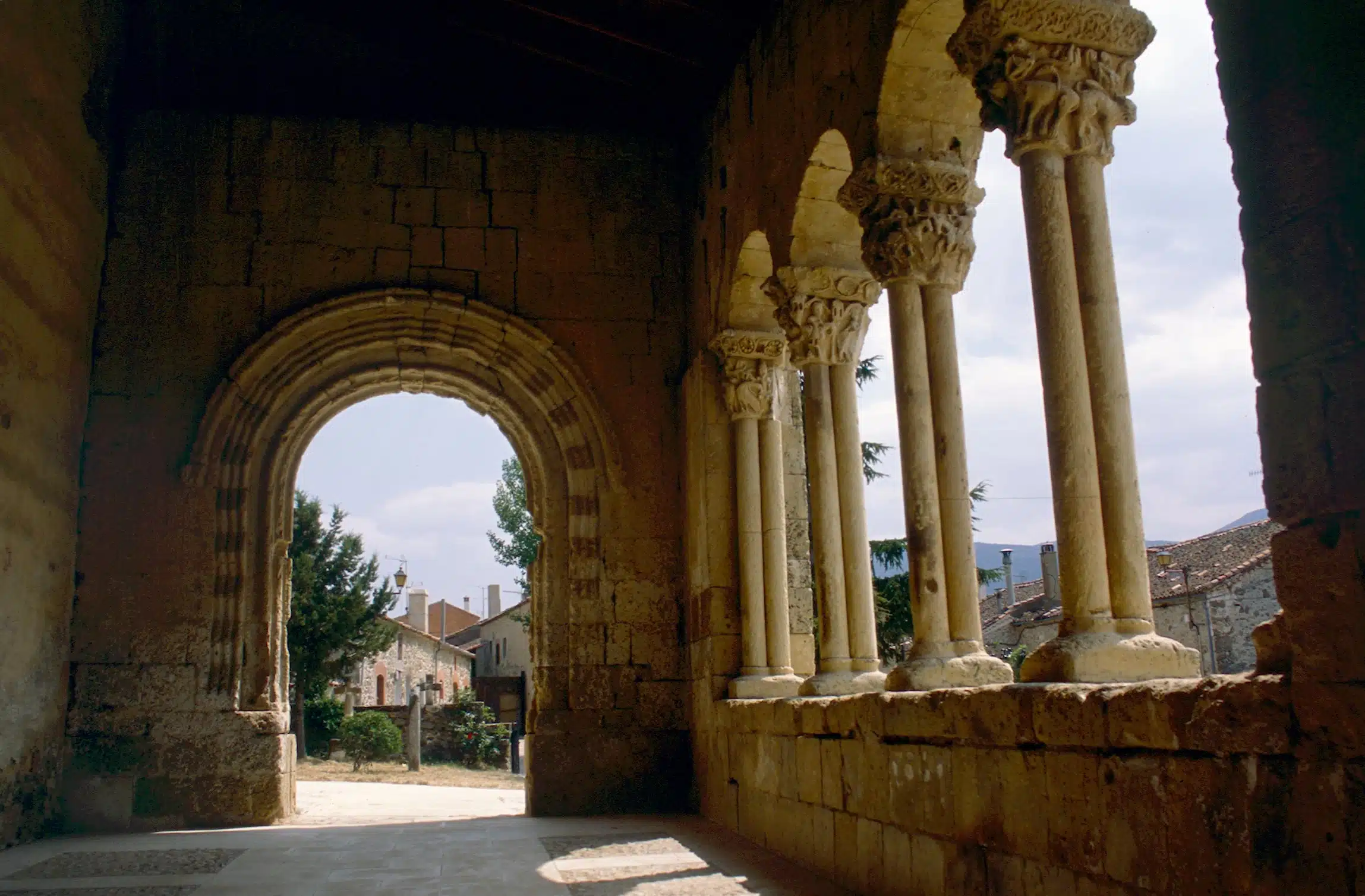 Otro de los grandes tesoros románicos segovianos es el templo de san Miguel Arcángel, en el recoleto pueblo de Sotosalbos. Su belleza y su proximidad a la capital lo convierten uno de los más conocidos y visitados, gracias a la rica representación escultórica que figura en los capiteles de su galería porticada. De nuevo podemos ver figuras de animales: leones, simios, serpientes…, así como criaturas fantásticas como dragones, arpías y basiliscos. En la cornisa se mezclan escenas lúdicas y personajes leyendo o escribiendo. El interior de la iglesia ha preservado parte de sus pinturas murales, sobre todo el toro alado del evangelista san Lucas. Junto a la iglesia, la plaza Mayor, al igual que el resto del pueblo reúne un buen conjunto de casonas tradicionales.