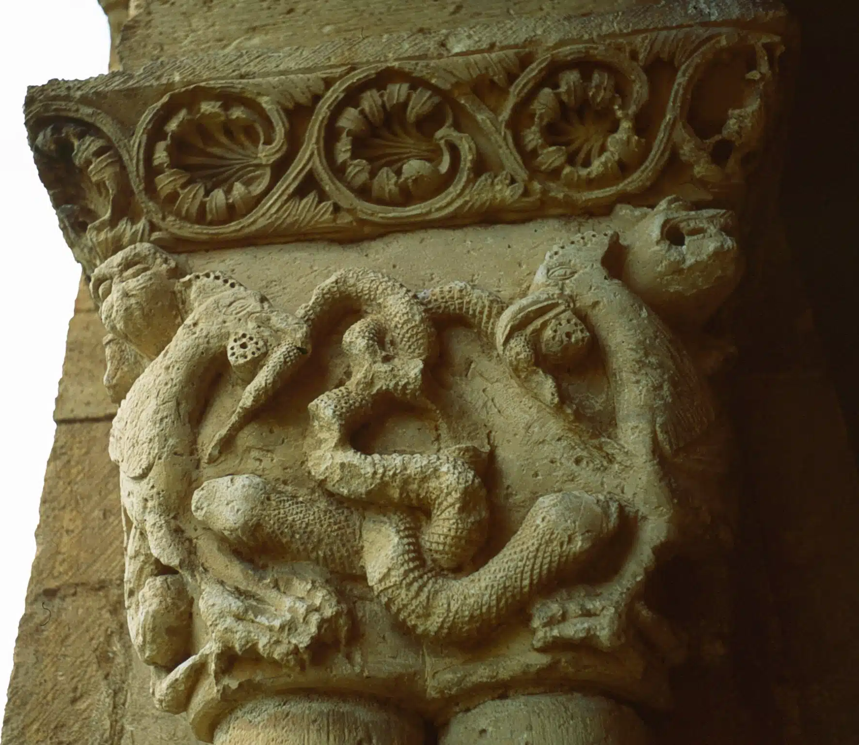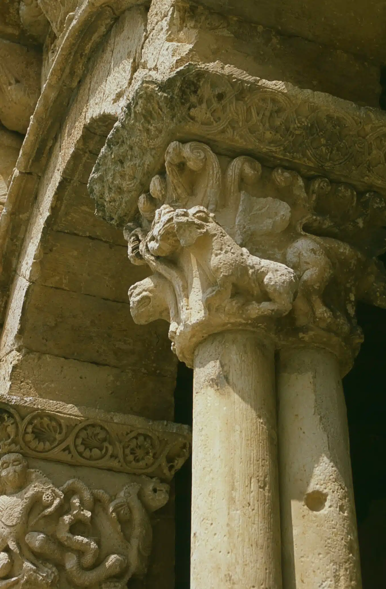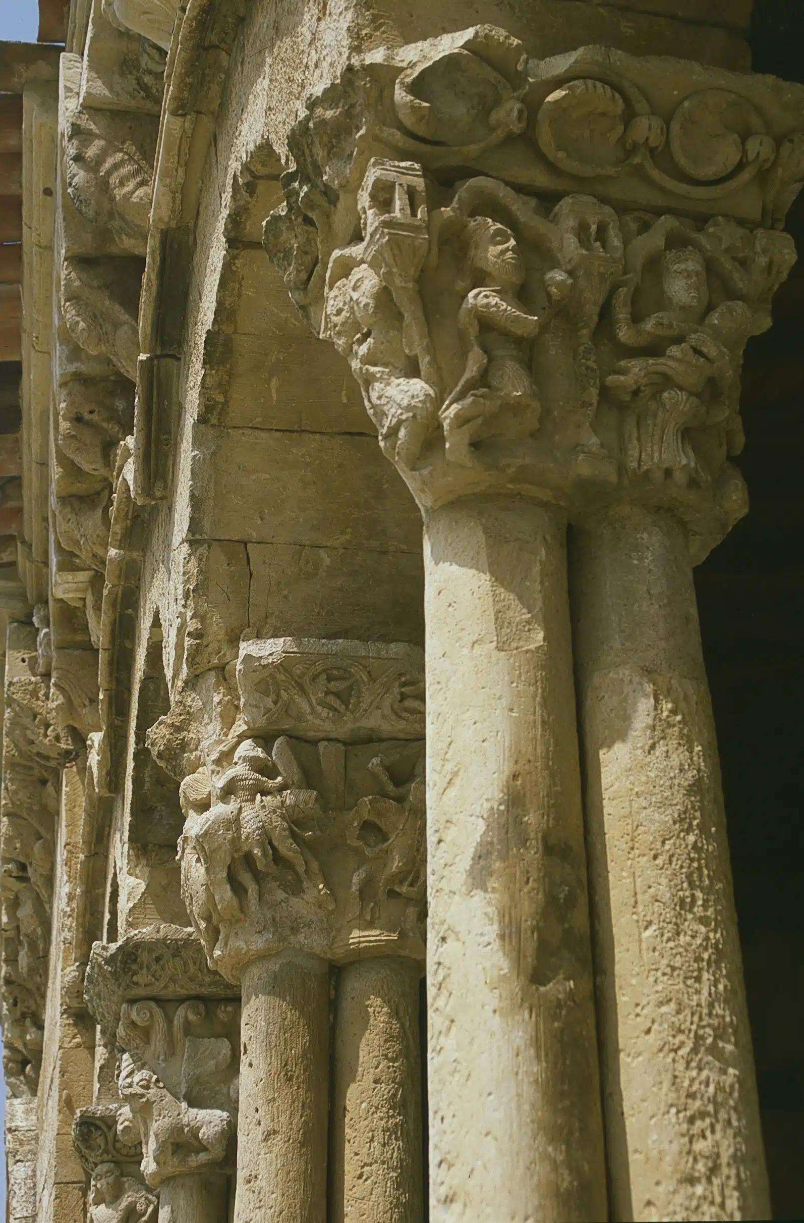 Otro de los grandes tesoros románicos segovianos es el templo de san Miguel Arcángel, en el recoleto pueblo de Sotosalbos. Su belleza y su proximidad a la capital lo convierten uno de los más conocidos y visitados, gracias a la rica representación escultórica que figura en los capiteles de su galería porticada. De nuevo podemos ver figuras de animales: leones, simios, serpientes…, así como criaturas fantásticas como dragones, arpías y basiliscos. En la cornisa se mezclan escenas lúdicas y personajes leyendo o escribiendo. El interior de la iglesia ha preservado parte de sus pinturas murales, sobre todo el toro alado del evangelista san Lucas. Junto a la iglesia, la plaza Mayor, al igual que el resto del pueblo reúne un buen conjunto de casonas tradicionales.